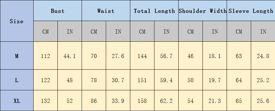 M: parte superiore comprimento 31.9in/81cm, peito 44.1in/112cm, ombro 18.1in/46cm